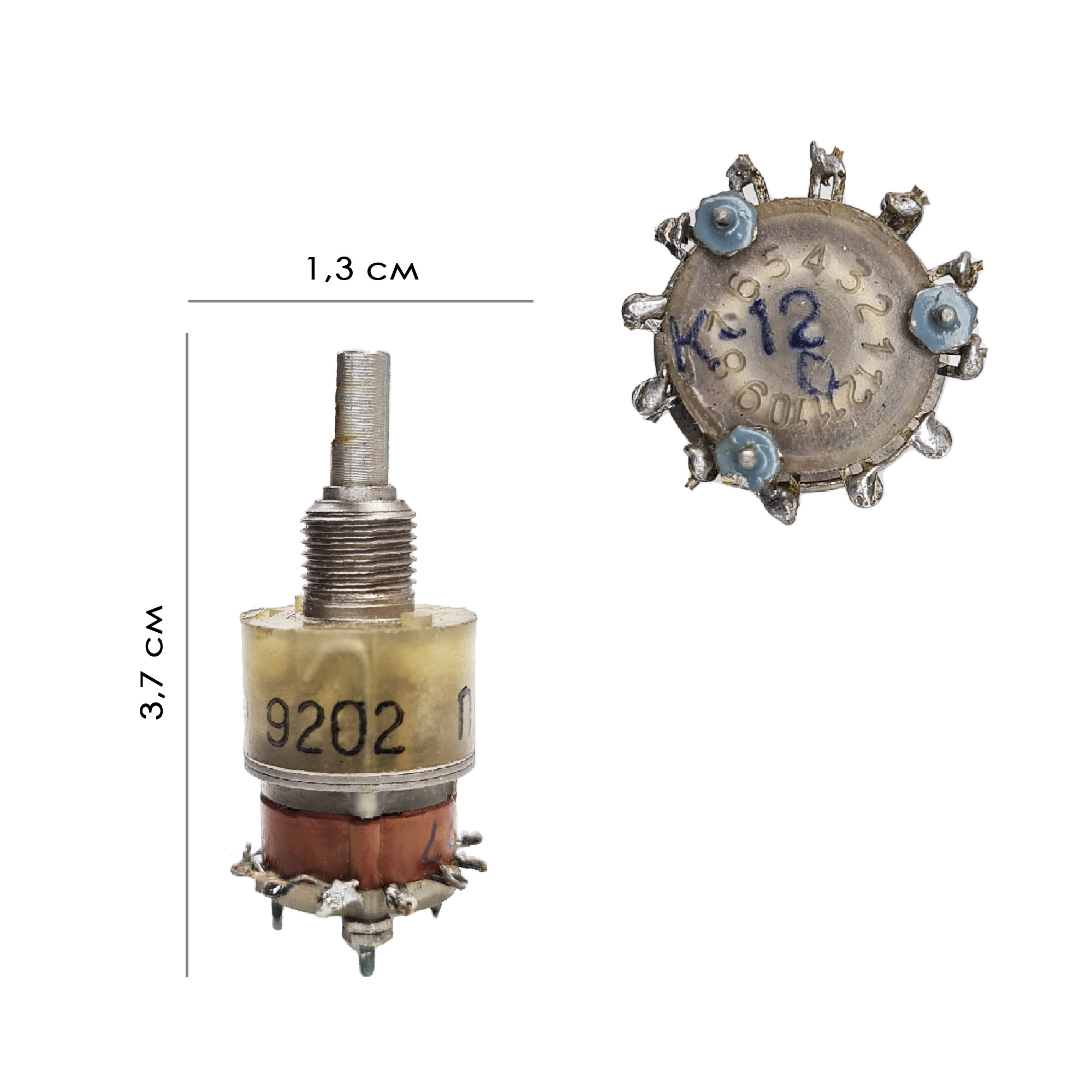 Переключатель ПГ2-5-12П1НВК поворотный галетный малогабаритный для объёмного монтажа.